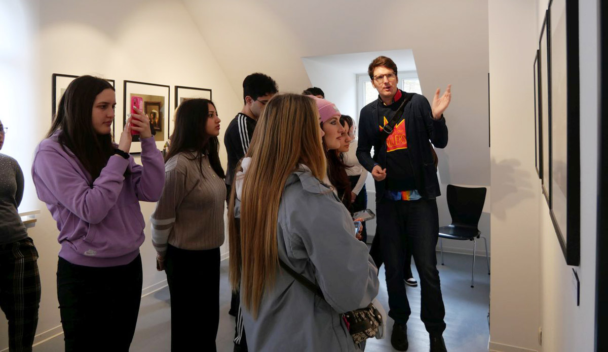 Für Schulklassen und Jugendgruppen bieten wir kostenlose Führungen und Workshops an. Die Führungen beziehen sich dabei auf die Themen unserer aktuellen Ausstellungen. Die Workshops nehmen grundlegende Themen der Fotografie in den Blick. Eine Übersicht unserer buchbaren Workshop-Angebote und Führungen finden Sie hier [Verlinkung Unterseite Angebote für Schulklassen].